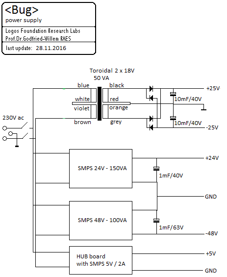 The electronic circuitry -in overview- consists of four PC-boards:
