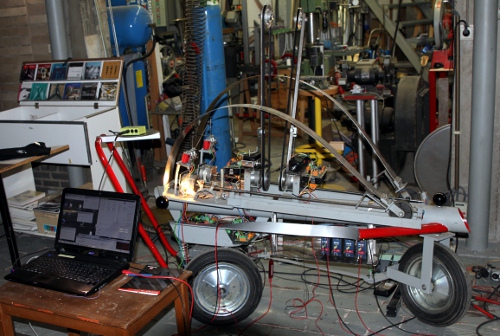 The instrument is mounted in a TIG-welded triangular structure with three large