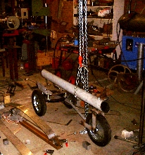 and sturdy wheels, 40 cm in diameter each. The instrumental part is mounted
