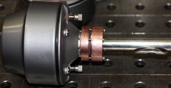 2.- We can call in the recipe applied to earlier robots such as <Bono>, <Ob> or <Bug> by using a membrane compressor to create a pulsating air jet oriented on the lip plate. We tried this out using a specially designed acoustic impedance convertor with an oval slit. The sound was at the most acceptable, but sounding quite artificial and electronic. Obviously a result of the fact that the flute is a resonator opened at both ends, thus the opening at the lip plate allows way to much of the pulsating air jet from the compressor to escape uncoupled in free air.