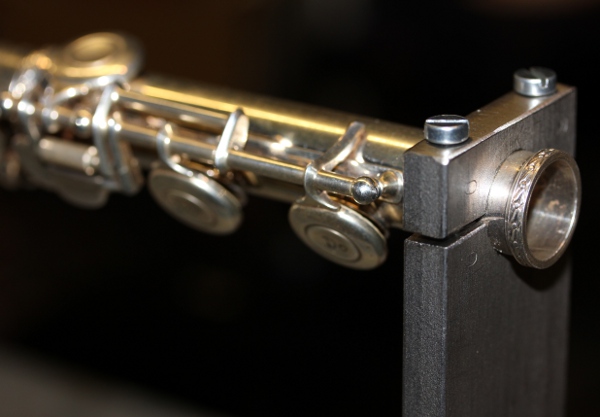 aanblaasgat blijft in deze konstruktie open en vrij zodat de fluit zich akoestisch
