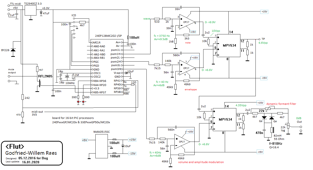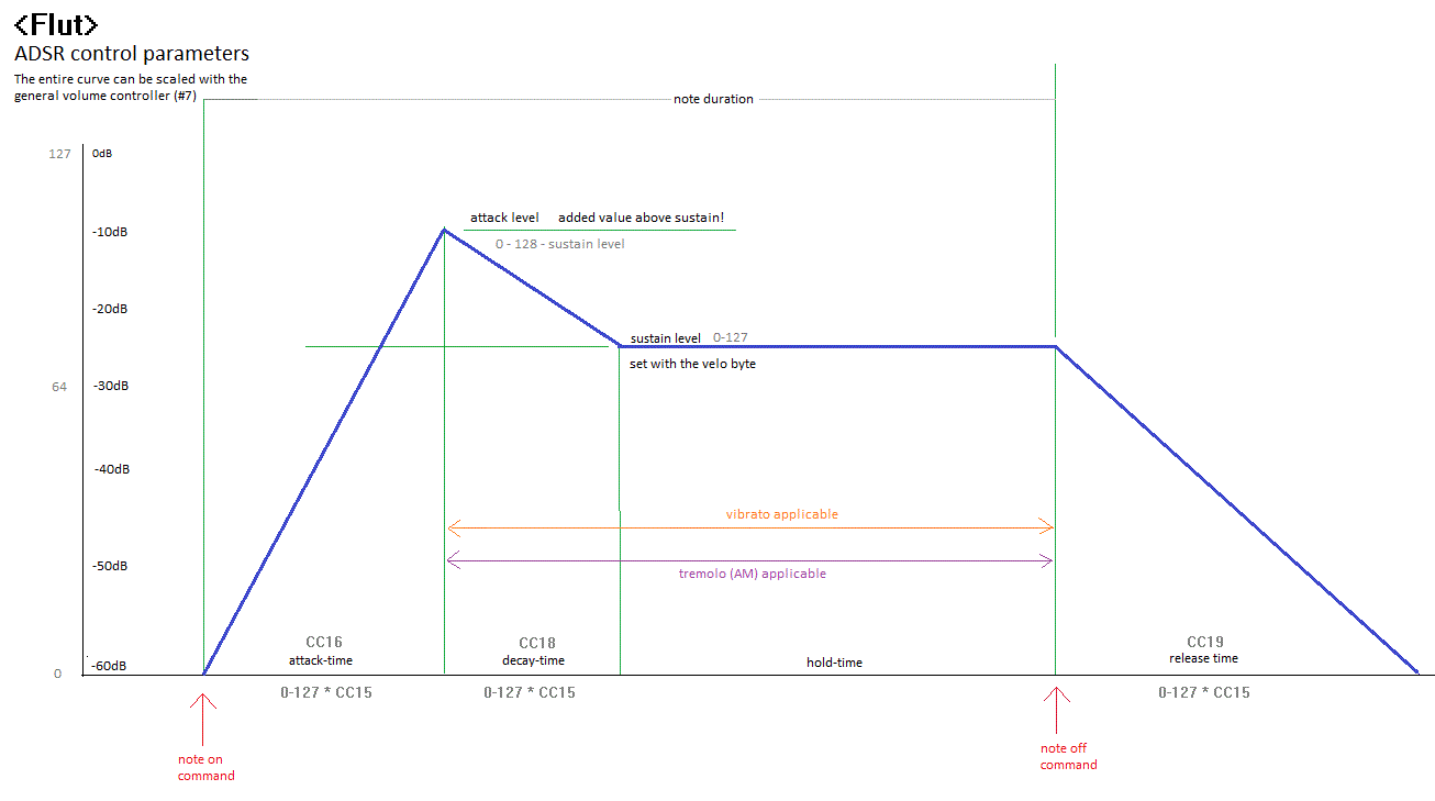 The flute, as all windinstruments, is a strict monophonic instrument. It should be treated as such in midi-files. Dont treat is as if it were a keyboard with flute sounds. If midifiles or real-time midi datastreams contain note-off commands not corresponding to the sounding note, things may go wrong. Such conditions happen when legato playing is sent whereby notes overlap. If polyphonic keyboards are used to play the instrument, such failures will be observed right away. Note that it is perfectly legal on monophonic instruments to play successive notes without sending note-off commands. This is in fact the best way to implement pure legato playing. Sequencer users also are warned about too excessive use of continuous controller messages, generally caused by 'drawing' controllers. Due to the hardware low-pass filters on the volume and adsr controllers, is makes no sense to send more than 15 such messages per second. Sending more can cause interference with the pitches generated. This equally applies to the pitchbend commands. Reasonably good sequencers have tools to let you thin controllers. In Sonar for instance, there are CAL scripts you can invoke to do exactly this.