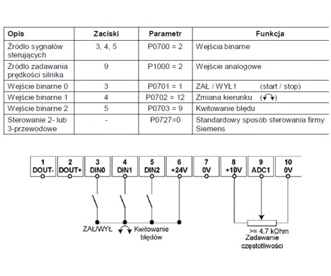 board. This is the connection diagram for the Sinamics motor controller: