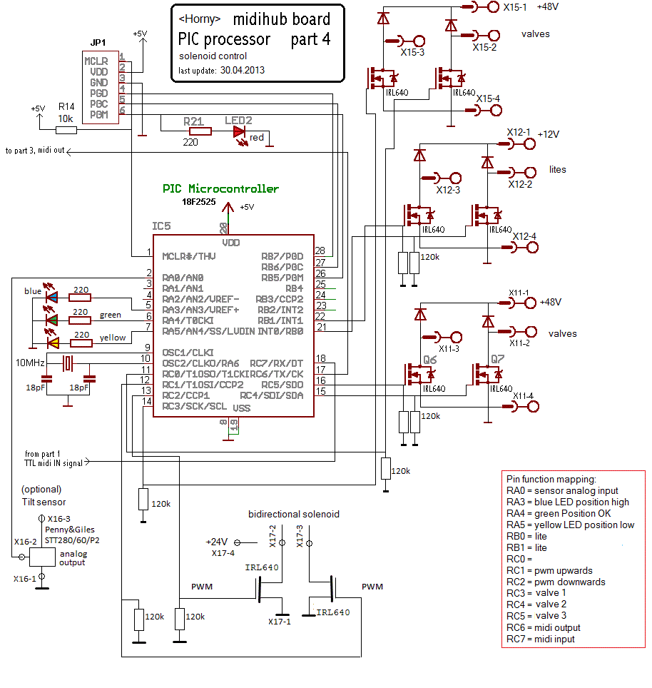 - +24V, 2.5 A for the bidirectional movement solenoid (PWM controlled).