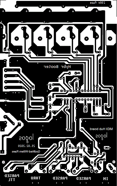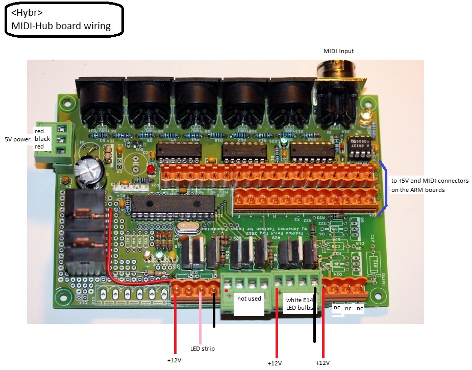 06.12.2017: Midi-hub board taken out again, DIN input resoldered and secured with epoxy rosin. Here is a memo for the wiring of that board: