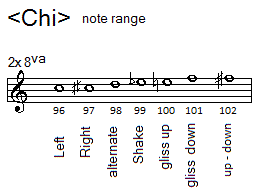 an automated set of maracas Midi channel : 10 Note range: 60 - 74 |