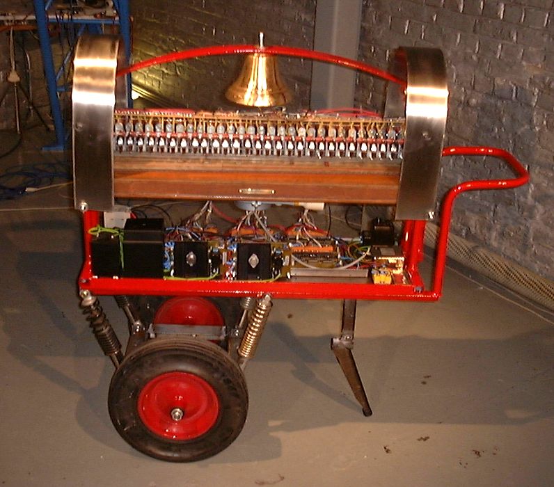 Note: we have many more robots than there are midi channels (16), hence we use an 8-port midi device to control the entire M&M robot orchestra. Port setting is handled automatically in our GMT midi fileplayer software, so users do not have to worry about this. As long as you mention the name of the robot in the title of each midi track (use the <name> notation), everything will work fine. Midi files for the orchestra must be in format 1 (multitrack). Use a single track for each robot. Multiple tracks for a single robot (quartertone instruments make this mandatory) are possible, but never combine two or more different robots in a single track. For composers wanting to take profit of the visual possibilities of the robots, we made an easy to use synoptic table with the possibilities implemented on each robot. Click here. Further Information: