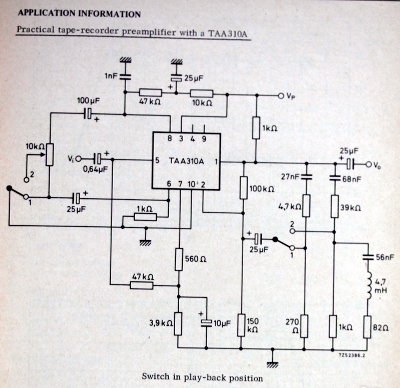 een TAA310A preamp chip van Philips/MBLE. We volgden toen nauwgezet de application