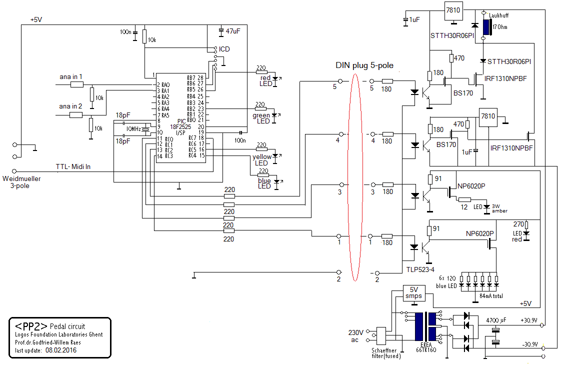 the pedal assembly. Due to the quad optocoupler there is full galvanic isolation