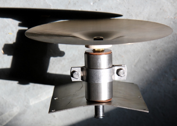 cymbal, with a single beater, was mounted as well. A single crotale tuned to