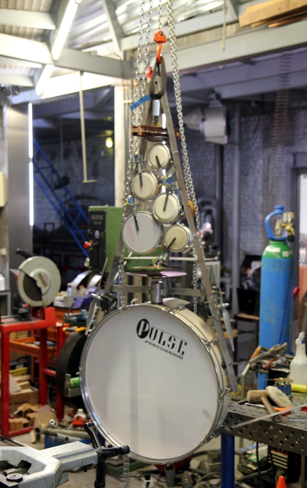 ceiling. Hence, it should not become too heavy. The idea of a flying drum kit