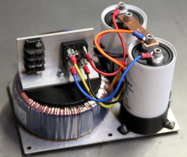 50 V transformer, a rectifier bridge and two hefty capacitors.