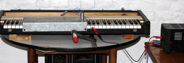 An automated Hohner 'Pianet'. This instrument is a five octave keyboard instrument
