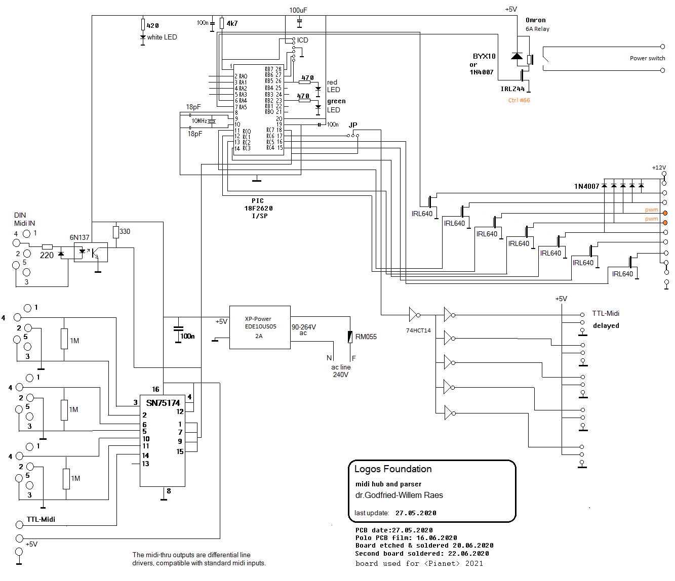diodes (1N4007) for inductive loads have been ommitted in the practical realisation