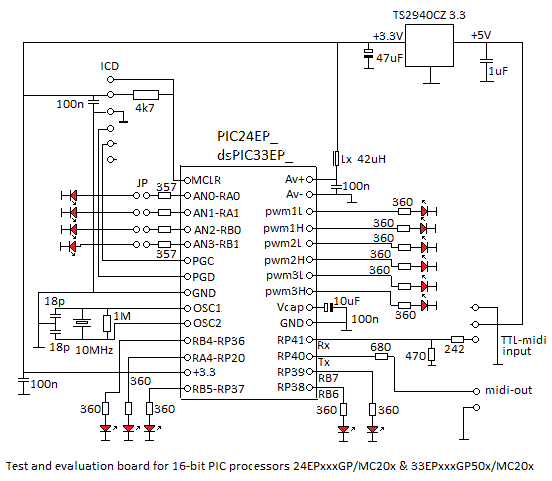 Debugging and programming board made (for 24EP and ds33EP series controllers):