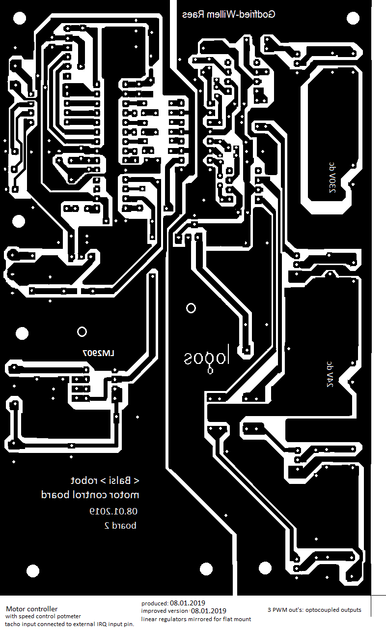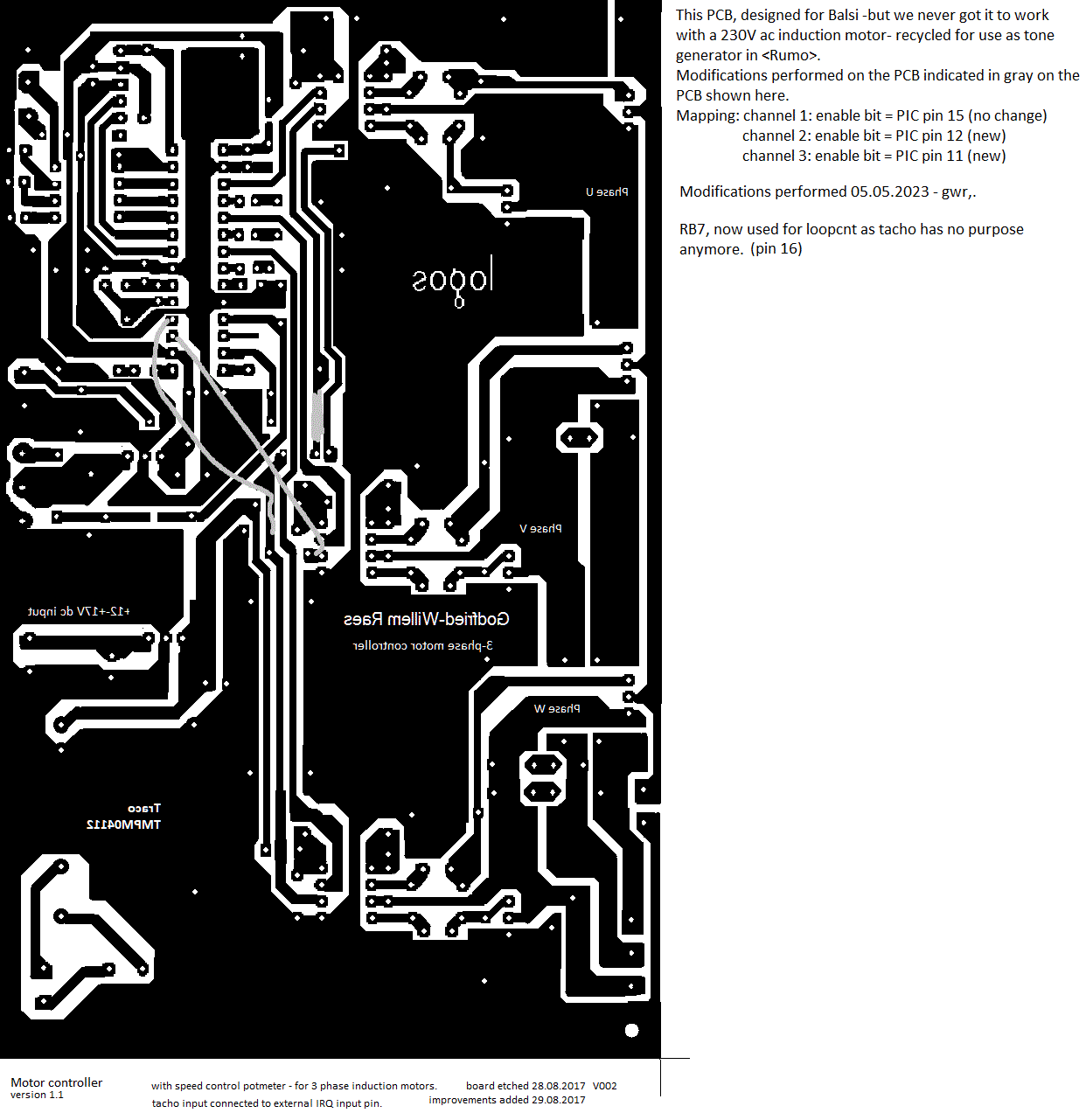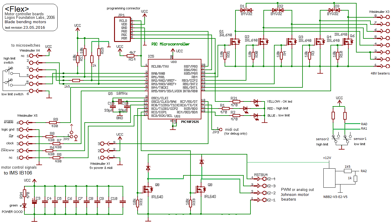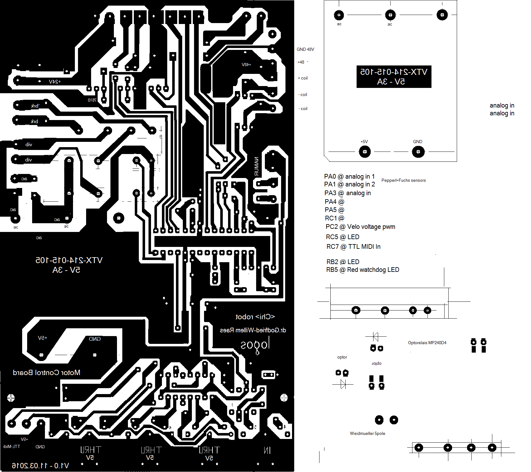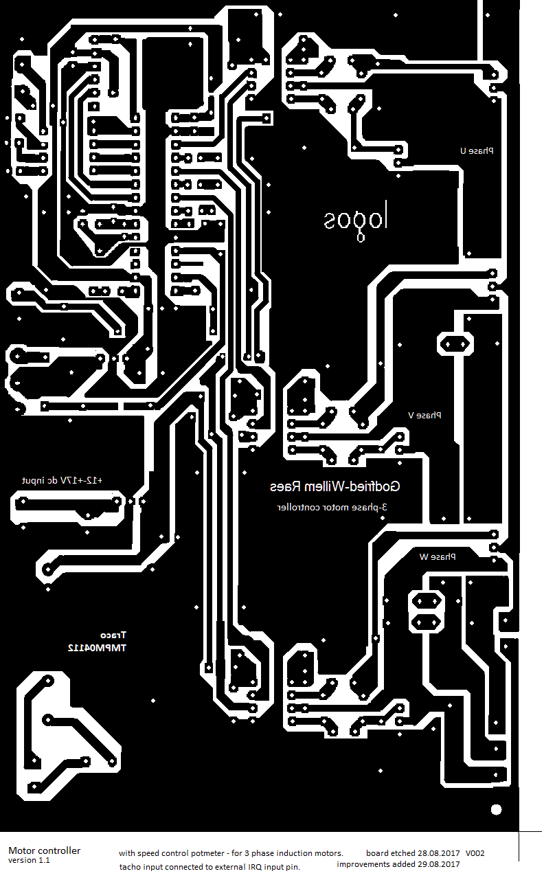 <Synchrochord> synchronous motor control board with H-bridge drivers last update: 05.02.2012 firmware o.k. but hardware fails on the bridge drivers. Replaced with an IB106 motor controller (13.4.1) |