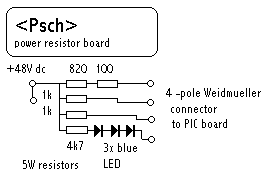 Since the blue lites on <Psch> operate on 12V, (current 40mA) we had to lower the supply voltage (48V) and used a simple resistance voltage divider on a sepate board with power resistors: