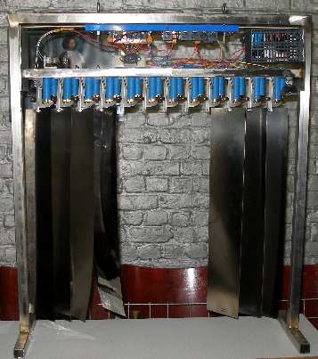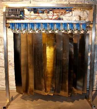 Deze automaat ontstond in eerste plaats op vraag van vele komponisten en medewerkers aan de uitbouw van ons robotorkest naar een automaat die in staat zou zijn ook het 'omgekeerd cimbaalgeluid', zo typisch voor techno muziek, te produceren. Onze eerste ideeen terzake gingen in de richting van perslucht, gekontrolleerd ontsnappend in een of andere resonator. De proeven daarmee verliepen uitstekend en erg overtuigend maar, de perlucht diende wel een druk te hebben van ca. 10 Bar. Op zich geen probleem want de kompressor in ons atelier levert dat op zijn sokken. Echter, na enkele minuten geluidsproduktie was het voorraadvat leeg en schakelde de kompessor aan met een oorverdovend lawaai voor gevolg. De kompressor heeft nochtans een groot label 'silent compressor', maar wat zo'n slogans betekenen weten we onderhand natuurlijk ook wel. Het vooruitzicht op reis te moeten trekken met een op voorhand gevuld vat perslucht van minstens zo'n 500 liter, leek ons niet direkt een aantrekkelijk alternatief. Dan maar langs elektrische weg geprobeerd. Uiteraard hadden we reeds enige ervaring opgebouwd met donderblikken, onder meer bij de bouw van <Thunderwood> waarin een groot hard-messing donderblik werd geintegreerd, maar de besturing daarvan was veel te traag voor wat ons hier voor ogen stond. Hier hadden we behoefte aan uiterst dunne metaalbladen (veerstaal of inox) van relatief kleine afmetingen en erg snelle elektromagnetische drivers. Daarmee hadden we reeds heel wat ervaring opgedaan, lang geleden, bij de bouw ontwikkeling en kompositie van projekten zoals 'Hex' en later, Holosound. Daarin maakten we gebruik van heel dunne staalbladen opgehangen aan, of aangebracht tussen, twee piezoelektrische transducers. In de bladen konden we zo uiterst rijke en geschakeerde geluiden en klanken opwekken, mede door gebruik te maken van komputer gestuurde feedback (cfr. onze multidimensionele oscilatoren uit de jaren '70 van vorige eeuw). In die projekten werden de trillingen van de bladen evenwel elektronisch versterkt en zo naar de luisteraar gebracht. Versterking evenwel staat haaks op het koncept van het robot orkest zoals ons dat hier voor ogen staat. Alle robots in het robot orkest werken immers voor hun geluidsproduktie zuiver akoestisch.