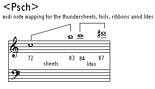 <Psch> werd ontworpen om te worden opgehangen. Uiteraard dient de ruimte daarvoor mogelijkheden te hebben die aan de stevigheidsvereisten voldoen. Eventueel kan <Psch> ook op de bodem worden opgesteld, opgehangen in het daartoe ontworpen bijhorende statief. De klankprojektie is dan evenwel niet optimaal, tenzij de vloer zelf niet geluidsabsorberend is. Ter bescherming van de allerdunste metaalfolies (0.02mm is werkelijk flinterdun!), plaatsten we deze in het midden van de automaat en de dikste platen (0.3 en 0.4mm) aan de beide buitenzijden.