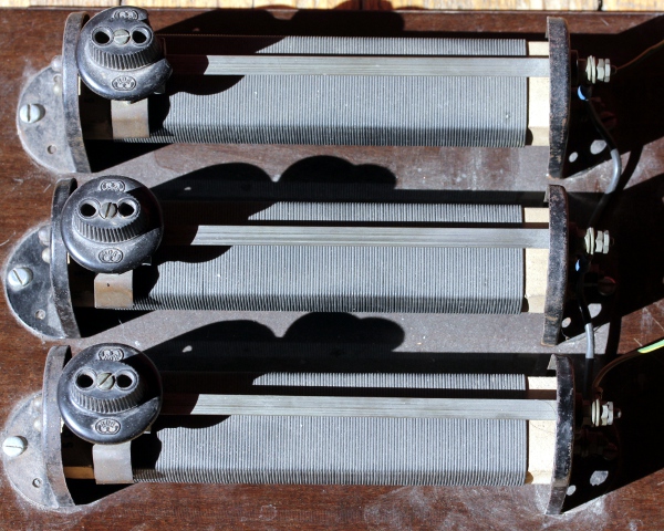 Raspen leken ons wel een interessant onderzoeksdomein. De 'toonhoogte' hangt af van de snelheid waarmee met het stokje over de rasp wordt bewogen. Het spektrum is dan weer een funktie van de vorm van de kuiltjes en de regelmaat van de inkervingen. De 'getrouwheid' hangt af van de diameter van het stokje. De geluidsterkte is afhankelijk van de kracht waarmee het stokje op de rasp wordt geduwd. Uiteindelijk is de registratie van geluid op een grammafoonplaat en een oude Edison cilinder niet fundamenteel verschillend van de werking van een rasp. Het stokje komt naar werking overeen met de naald van zo'n oude krassenlezer.... Om zoiets goed te kunnen bouwen bleek het wezenlijk dat het hele bewegend deel een zo klein mogelijke massa zou moeten hebben. De beweeglijkheid moet immers erg groot zijn en dus de inertie gering. De 'rotoren' van de lineaire motoren (een slede ware eigenlijk een betere benaming) bevatten magneten noch ijzer, maar slechts een dubbele in serie geschakelde driefazige wikkeling, waardoor aan de voorwaarden vrij behoorlijk kon worden voldaan. Een periode van de besturing komt overeen met een verplaatsing van de slede van 60.96 mm.