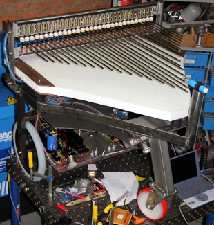the toy piano, the sounds all stem from massive rods clamped at one end in a