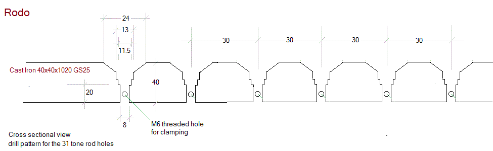 of a single bronze rod, 8 mm in diameter and cut to a length of 961 mm. (An