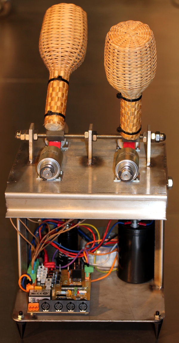 An automated pair of shakers made and designed to the order of Stef Kamil Carlens.