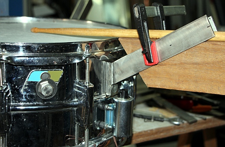 first determine the pivoting point for optimum rimshot sound and drill a 3 mm