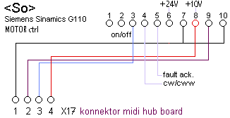 Programming information and settings for the Siemens Sinamics G110 motor controller: