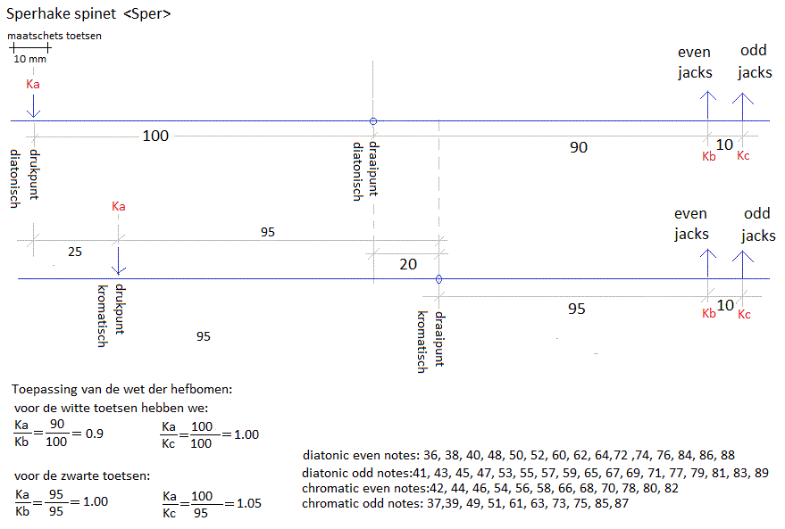 | Spinet Sperrhake - afstanden klavier voor vorsetzer | |||||||