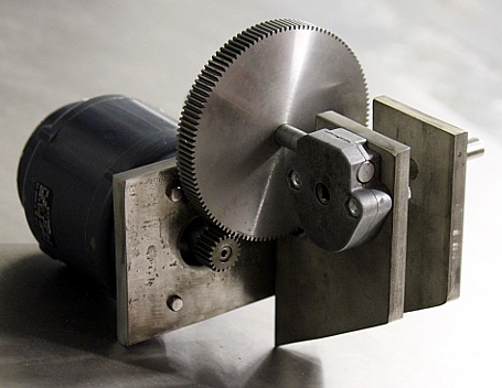 1:10 dented wheel construction, a worm gear -horizontal in the drawing- without