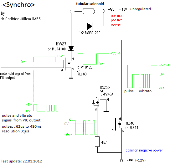 Detail of the circuit for pulse- and hold on these finger solenoids: