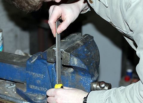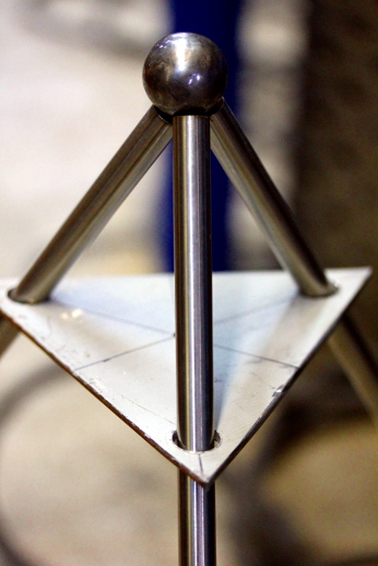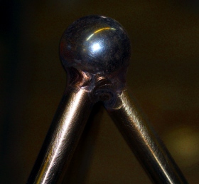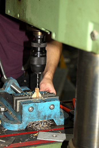 diameter with a hole, ca.3mm large. In that hole we glue a 10 mm piece of