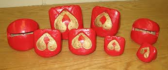 a thick layer of mostly red chinese lacquer. The lacquer not only protects the