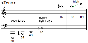 difficult to sound as well as the unplayable notes 35 to 39 leading to minimal