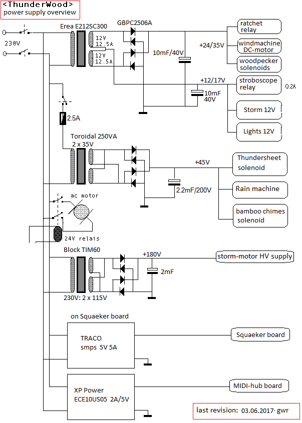 30.06.2010: Start up failure. Ctrl.66 not working... repair required. Power supply module for the 48V revised. (Thundersheet, chimes and rain power).