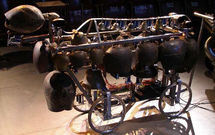 the playing of 36 cow bells, ranging in size between 39cm and 5cm in width.