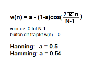 De algemene formule voor zowel hanning als hamming vensterfunkties is: