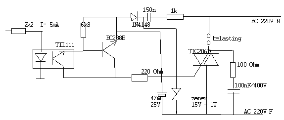 Sturing van netspanningsgevoede schakelingen via een optocoupler en een triac vermogensregelaar: