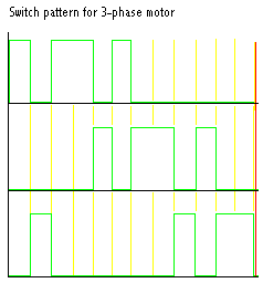 Note the 120 degree phase shift. The pattern was designed to generate a lot of thirth harmonic distortion on the resulting wave, thus increasing the RMS voltage over the motor windings.