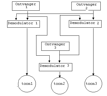 Technisch probleem dat zich onmiddellijk stelt wanneer we op grond van bovenstaande wiskundige overwegingen een instrument zouden willen bouwen, is dat de berekende verschiltonen niet akoestisch bestaan noch als dusdanig waargenomen worden door menselijke waarnemers. Hier diende dus de analoge elektronische rekentechniek ingeschakeld te worden. In eerste instantie poogde ik gebruik te maken van allerhande schakelingen zoals die werden ontwikkeld voor -overigens erg onbetrouwbare- alarmsystemen en dieptemeters uit de scheepvaarttechniek. Bijna al deze schakelingen berusten echter op een of andere vorm van amplitude-demodulatie (alarmen) of pulsvertragingstijdmeting (dieptemeters en echografen). De signalen worden in deze technische toepassingen immers alleen gebruikt om logische nivoos te genereren. Bovendien bleek de haalbare signaal/ruisverhouding voor muzikale doelen volkomen onaanvaardbaar. Na toch wel enkele jaren van nogal intensief laboratoriumwerk, heb ik uiteindelijk volgend schakelprincipe als optimaal weerhouden . De 'clou' van de schakeling bestaat enerzijds in het oneigenlijk gebruik van gebalanceerde modulatoren als frekwentie-demodulatie-schakelingen , voor een signaal dat eigenlijk geen echt frekwentiemodulatiesignaal is, en anderzijds in de manier waarop de demodulatoren onderling gekoppeld werden. Voor de niet-technische lezer kan ik wellicht volstaan door de werking van de gebalanceerde modulator te definieren als een elektronische schakeling die van twee op de ingangen aangeboden elektrische spanningen met een bepaalde frekwentie steeds alle som en verschiltonen tussen die frekwenties opwekt en op de uitgang aanbiedt. Ook de uit de vroegere elektronische muziek welbekende ringmodulator berust op deze schakeling.