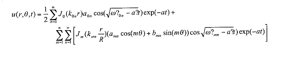 De algemene formule die het gedrag van een aangeslagen membraan van bvb. een trommel beschrijft ziet eruit als volgt: