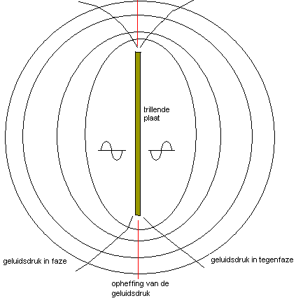 de trilling in tegenfaze wordt afgestraald, waardoor de amplitude op een bepaald