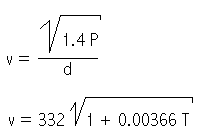 in komputer-Basic notatie: v = ((1.4 * P) ^ ( 1/2 )) / d