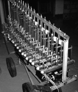 Dit instrument is een computergestuurde akoestische angklung. Het kan bespeeld worden via standaard MIDI kommando's en via onze GMT software kan het ook puur algoritmische kommando's uitvoeren. Het is gemonteerd op een stevige kar en kan zo de straat op voor straatperformances. In dit geval is het aangedreven door een enkele 24V autobatterij, kontrole en programmering gebeuren via een subnotebook PC of een voorgeprogrammeerde microcontroller.