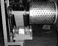 precise speed control easy to implement. The motor rotates a perforated cylinder taker from an old laundry machine. Over the cylinder a piece of heavy canvas hangs, causing the wind-noise production proportional to motor speed.