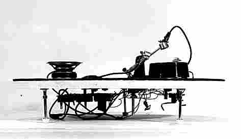 Elektronische Studio van de Universiteit. Vorig jaar nog was hij gastkomponist aan het EMS in Stockholm en bij de UIA/Phonos Foundation in Barcelona.