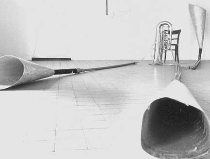 "Nadat ik eerst een tijd met afvalinstrumenten gewerkt heb, konstrueer en bouw ik sinds het midden van de jaren '80 nieuwe, eigen-aardige instrumenten. Dikwijls onstaan die instrumenten uit bepaalde projekten of door een "biografische samenloop van omstandigheden". De orgelpijpen uit de Fluitenmachine komen uit de dorpskerk van het naburige dorp, ik kreeg ze als geschenk van een vriendin. De messen uit het instrument 'Messertisch' (tafel met messen er in gestoken) zijn mij -na een rondvraag naar verschillende soorten messen- opgestuurd door vrienden. In de volgorde waarin ze toegekomen zijn met de post, heb ik ze in de tafel gestoken.