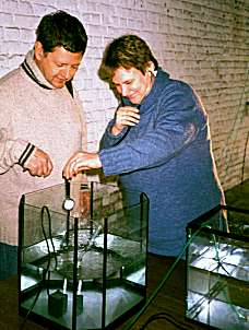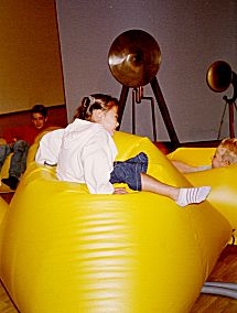 Met de Pneumafoon in het Gemeentemuseum te Helmond (Nederland).