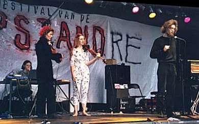 <M&M> deze maal in kwartetformatie: Kristof Lauwers, Barbara Buchowiec, Moniek Darge en Godfried-Willem Raes koncerteerden te Enschede tijdens het AKI (Akademie voor Beeldende Kunsten) "Opstand" Festival.